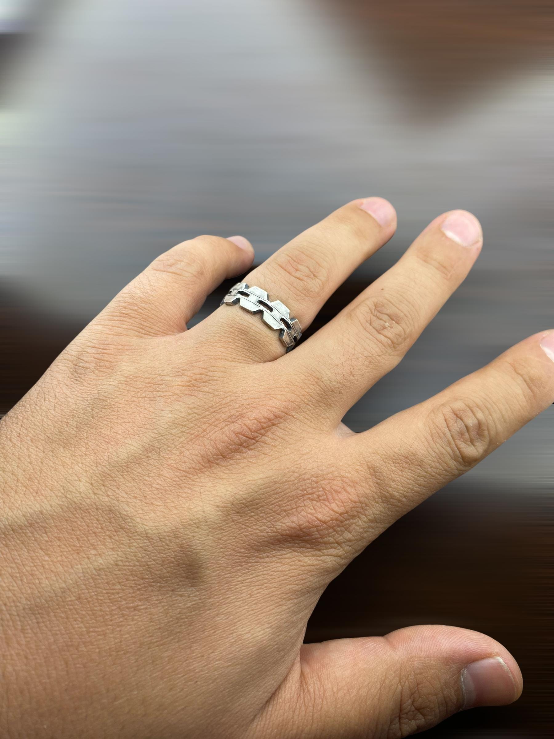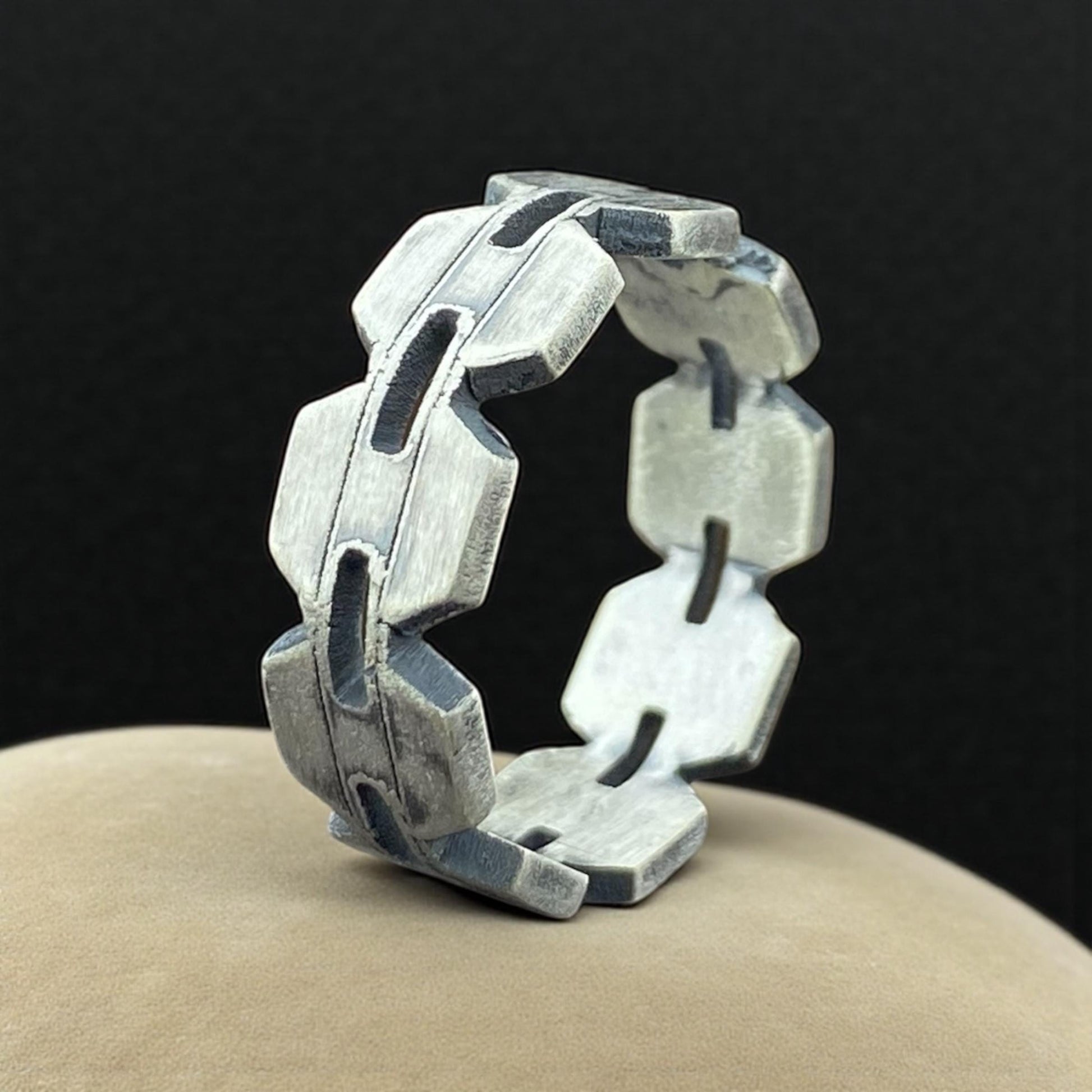 Industrial Hex Link 925 Sterling Silver Ring | Rustic Matte Chain Geometry Men’s Wedding Band Handcrafted by Cousinjewellry
