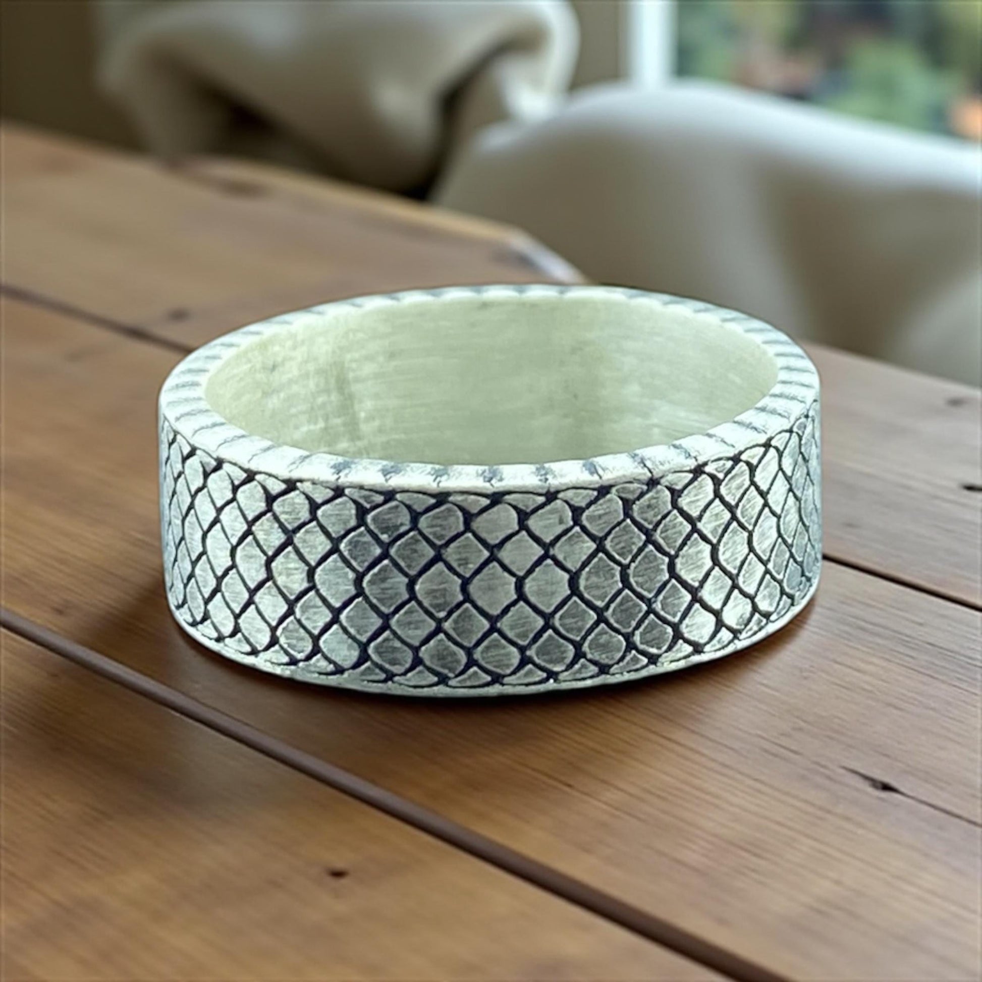 This handmade sterling silver ring features a striking reptile scale pattern, offering a bold and textured design for men who seek something truly unique. Perfect as a symbolic statement ring or a meaningful gift, this wide silver band reflects strength and individuality. Crafted with attention to detail by Cousinjewellry, this piece merges nature-inspired aesthetics with timeless craftsmanship.